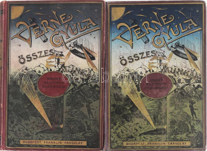 Verne Gyula: A Grant kapitány gyermekei. Ford.: Vértesi Arnold. I-II. köt. Bp., [1926], Franklin-Társulat, 237+(3) p.; 271+(1) p. Szövegközti és egészoldalas illusztrációkkal. Kiadói aranyozott, festett egészvászon-kötés, kopottas borítóval, kissé sérült gerinccel, néhány kissé sérült, foltos lappal.
