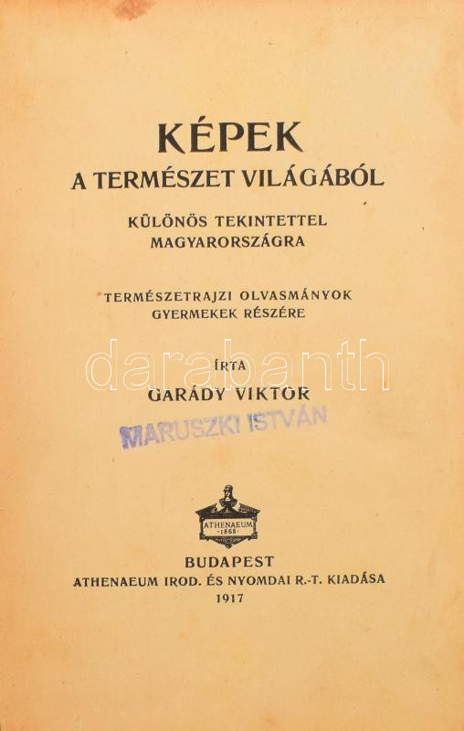 Garády) Gauss Viktor: Képek a természet világából különös tekintettel Magyarországra.