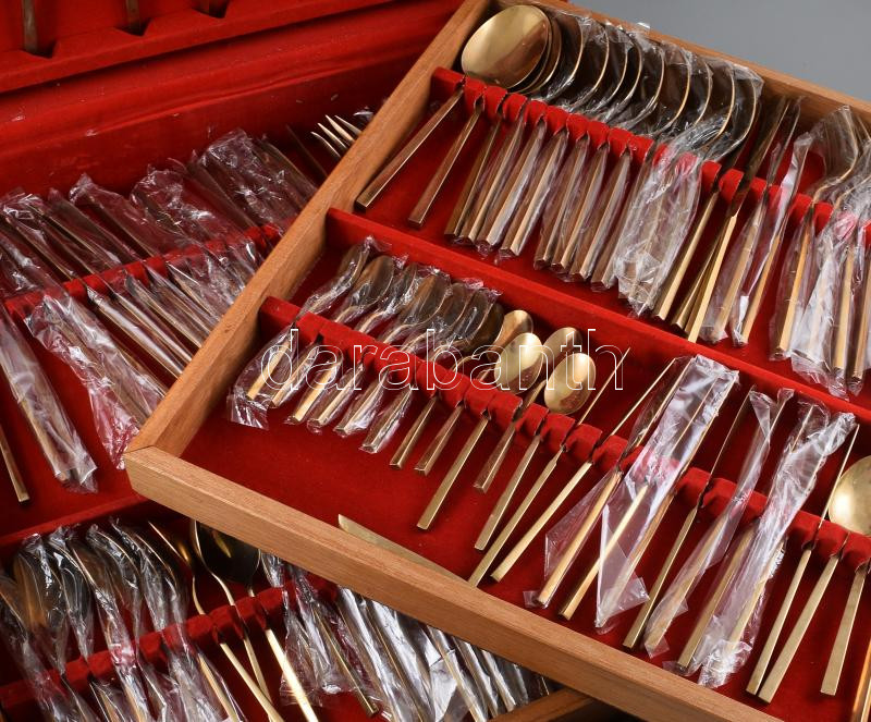 Leírás: 144 részes thaiföldi bronz evőeszköz készlet, jelzett, rózsafa díszdobozban.