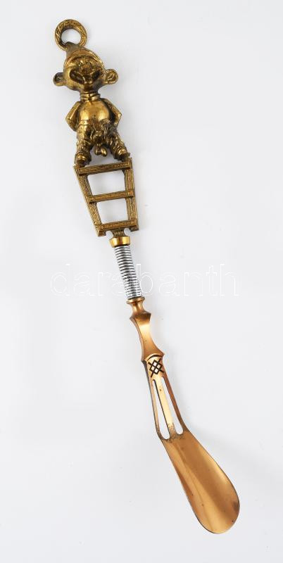 Leírás: Erotikus törpe figurális réz nyelű cipőkanál, h: 37 cm