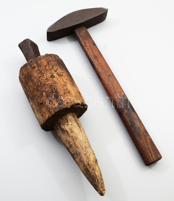 Kaszakalapáló kalapács, fába ékelt üllővel. cca 19. sz. vége, Alföld, ... https://www.darabanth.com/hu/502-Gyorsarveres/502.0/Mutargy-papirregiseg-egyeb/Bolhapiac~1500010/Kaszakalapalo-kalapacs-faba-ekelt-ullovel-cca-19-sz-vege-Alfold-h-27-30-cm~II3411628