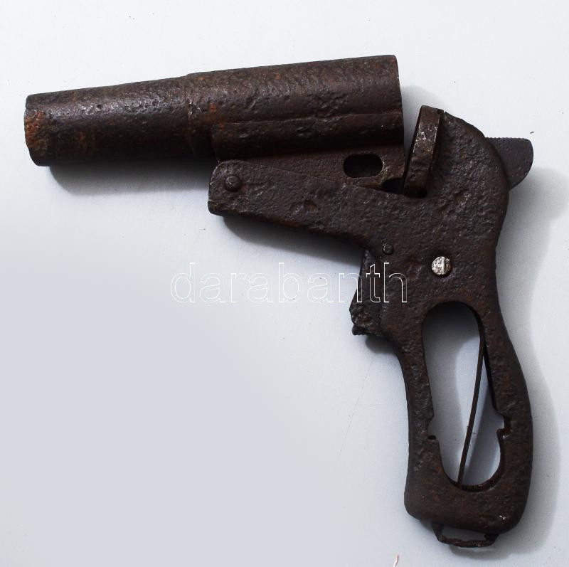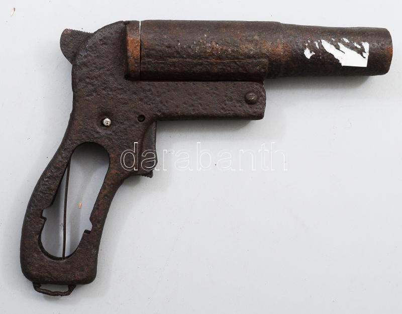 Régi rakétapisztoly / jelzőpisztoly, közepes állapotban, 19x17 cm https://www.darabanth.com/hu/502-Gyorsarveres/502.0/Mutargy-papirregiseg-egyeb/Militaria~3000106/Regi-raketapisztoly-jelzopisztoly-kozepes-allapotban-19x17-cm~II3410984