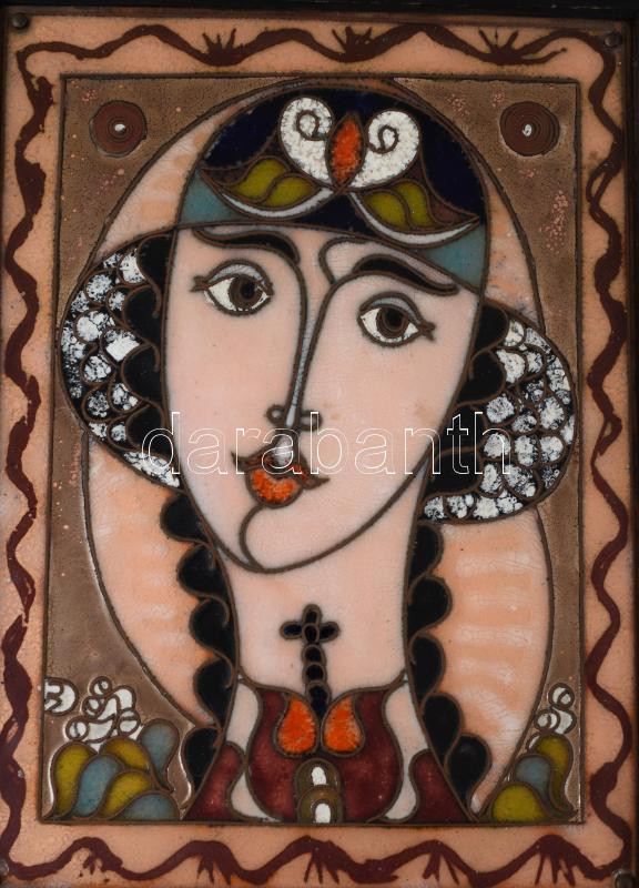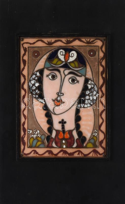 Leírás: Radnai Zoltán (1960-): Merengő. Jelzés nélkül, fa keretbe applikálva, 20x15 cm