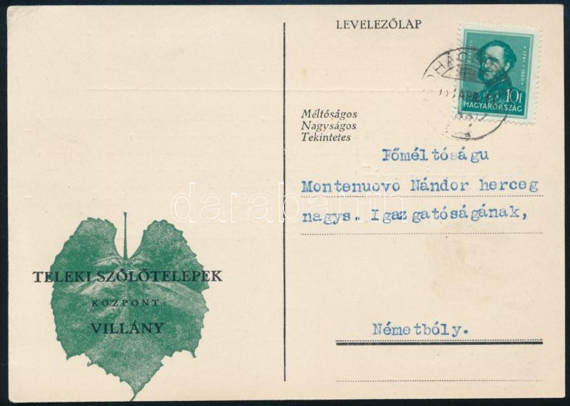 1933 A villányi Teleki Szőlőtelepek üzleti levelezőlapja postán elküld... https://www.darabanth.com/hu/502-Gyorsarveres/502.0/Mutargy-papirregiseg-egyeb/Okmanyok~3000101/1933-A-villanyi-Teleki-Szolotelepek-uzleti-levelezolapja-postan-elkuldve-jo-allapotban~II3417363