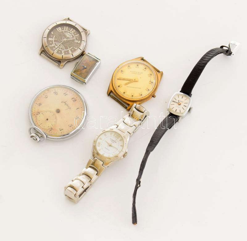 Leírás: 6 darab karóra és zsebóra, közte Kienzle Markant, hibásak.