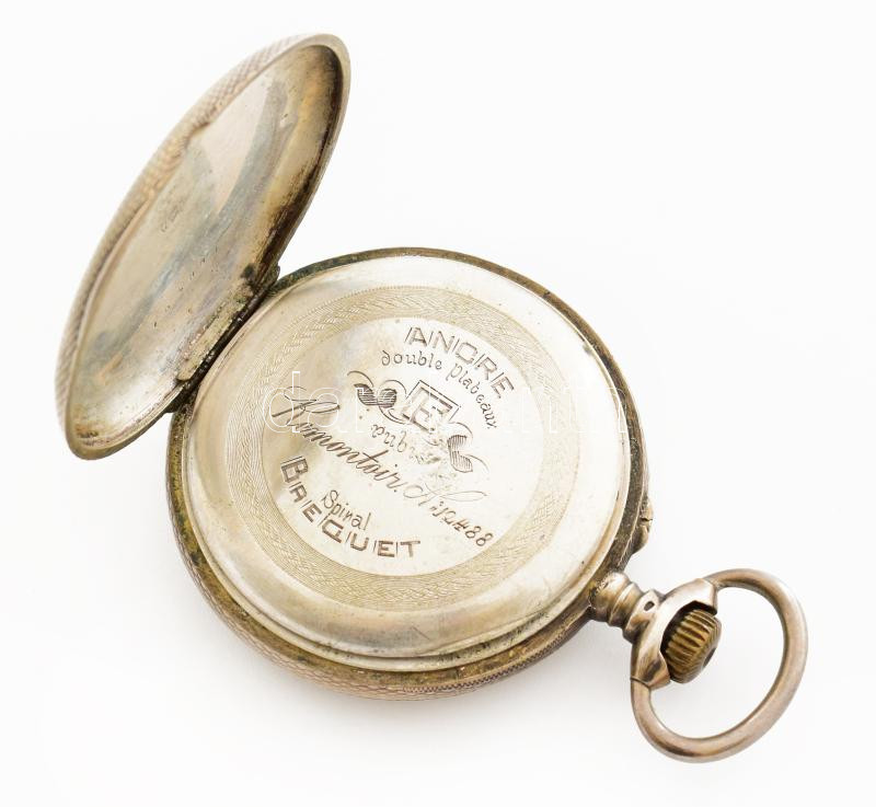 Leírás: Ancre Spiral Brequet ezüst (Ag) tokos zsebóra, jelzett, működik, d: 5 cm, bruttó 91g