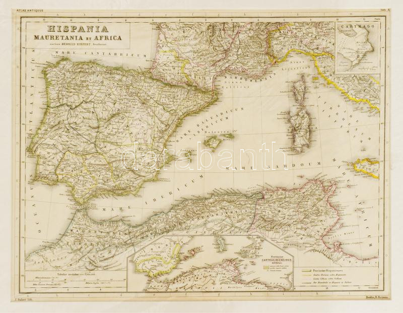 [A Földközi tenger, Spanyolország]. Hispania Mauretania et Africa Litografált térkép Heinrich Kiepert Atlas Antiqus c. munkájából. 34x44 cm Paszpartuban