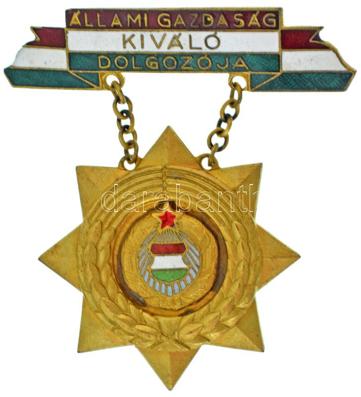 Leírás: DN(~1960-1980) "Állami Gazdaság Kiváló Dolgozója " Kádár-címeres, zománcozott bronz kitüntetés T:AU