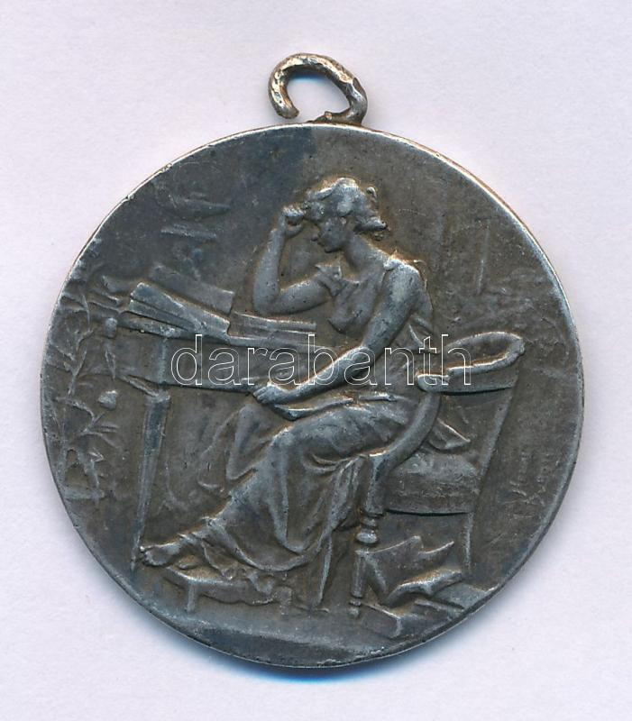 Franciaország 1900 k. Könyöklő nő, egyoldalas, peremén jelzett Ag emlékérem füllel. Szign.: Henri Dubois (12,44g/32mm) T:XF,VF