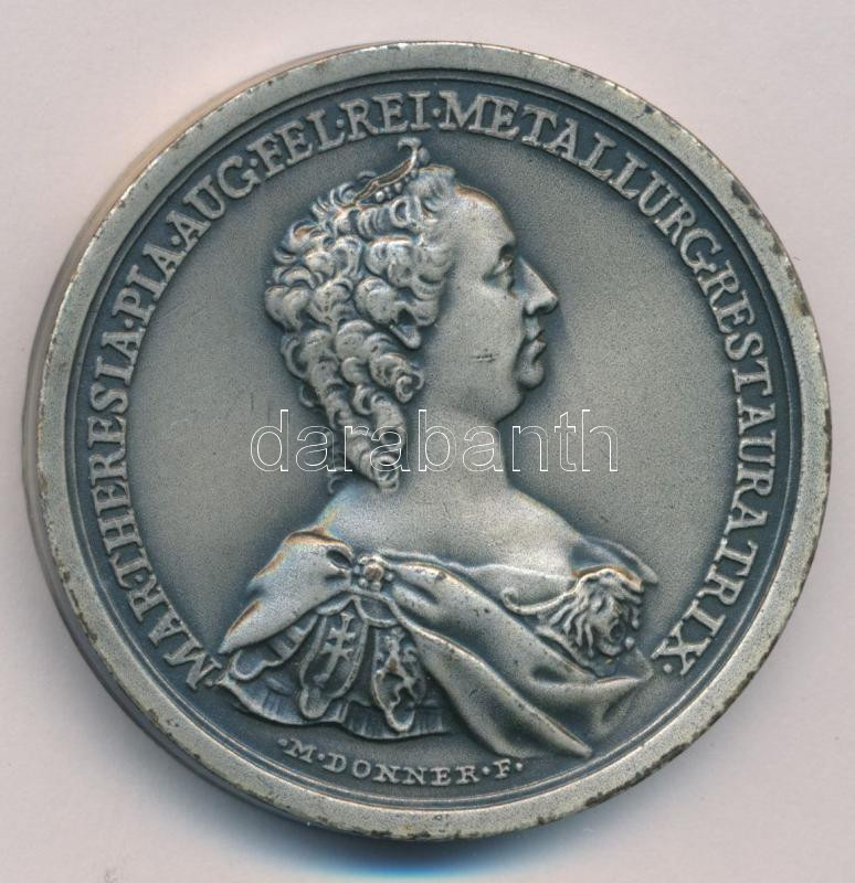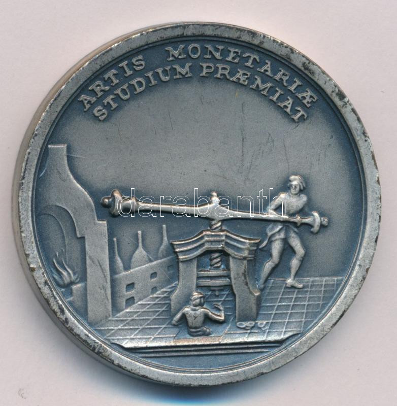 1960-1970 k. "Selmecbányai Bányászati Akadémia - pénzverés" Matthäus Donner emlékérméjének utánverete, ezüstpatinázott bronz jutalomérem. "ARTIS MONETARIAE STUDIUM PRAEMIAT / MAR THERESIA PIA AUG FEL REI METALLURG RESTAURATRIX" (45mm) T:XF