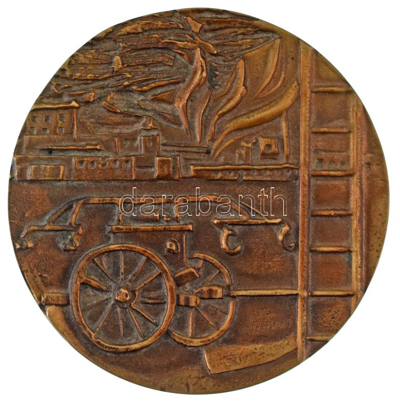 Leírás: 1973. "100 éves a Miskolc városi tűzoltóság " kétoldalas, öntött bronz emlékplakett (102mm) T:AU