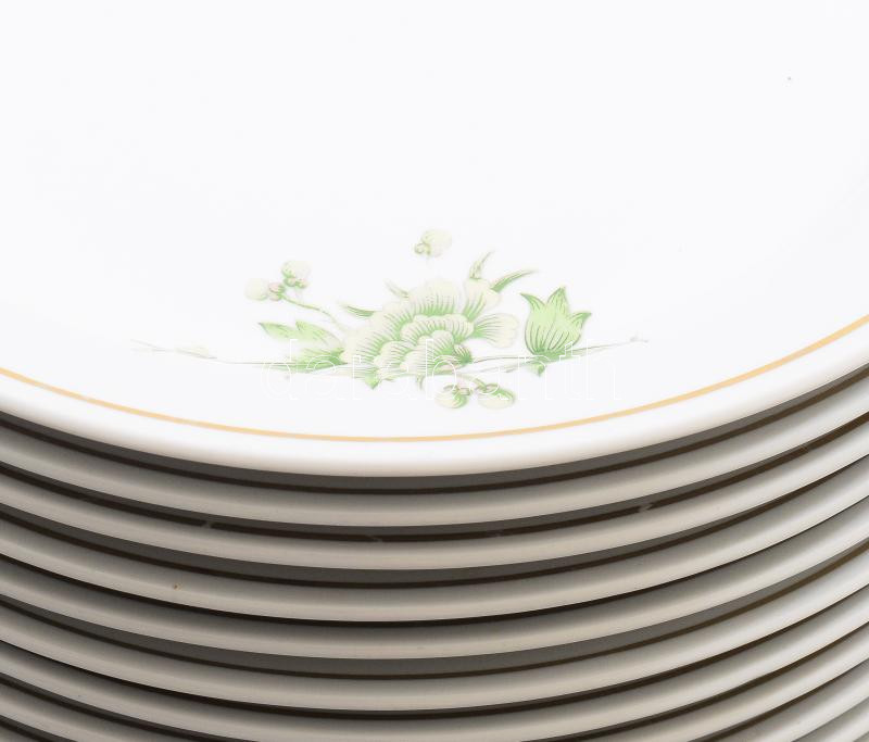 Leírás: Hollóházi zöld virágmintás 24 darabos nagytányér készlet, jelzett, d: 24,5 cm