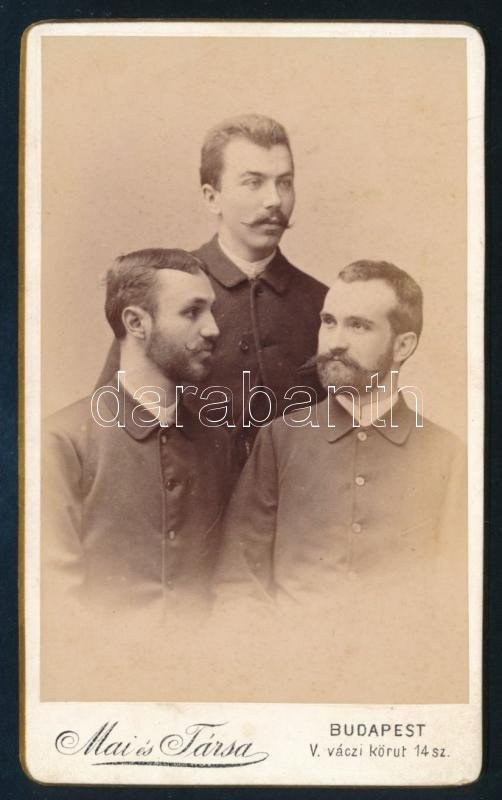 1887 Három férfi portréja, vizitkártya Mai és Társa budapesti műterméb... https://www.darabanth.com/hu/504-Gyorsarveres/504.0/Fotomuveszet/Foto~1000005/1887-Harom-ferfi-portreja-vizitkartya-Mai-es-Tarsa-budapesti-mutermebol-a-hatoldalon-ded~II3400347