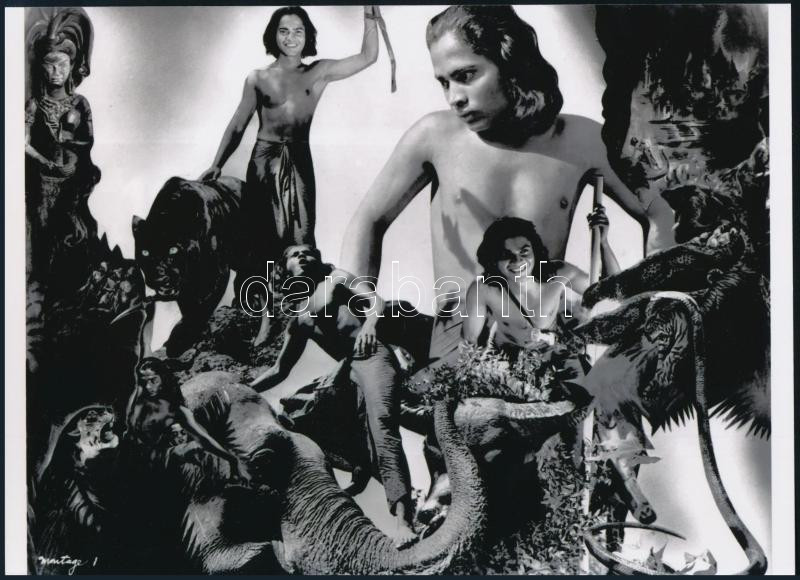 Leírás: 1942 "Dzsungel könyve" - Korda Zoltán filmjének prezentációs fotómontázsa, 1 db modern nagyítás, jelzés nélkül, 15x21 cm