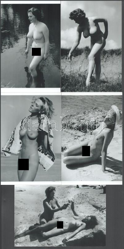 Leírás: "Napsütötte szépasszonyok", szolidan erotikus felvételek, 5 db modern nagyítás, jelzés nélkül, 15x10 cm és 10x15 cm
