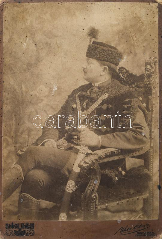 Leírás: ca 1900 Kossuth Ferenc (1841-1914) miniszter díszmagyarban, Kossuth Lajos fiának nagy kabinetfotója, 24x16 cm Kis kopásokkal