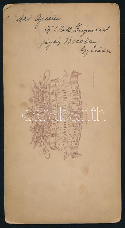 cca 1890 Elegáns úr (Dr. Róth Zsigmond) portréja, kabinetfotó Brodszky Mór győri műterméből, a hátoldalon feliratozva, sarkain kissé sérült, 20,5x11 cm