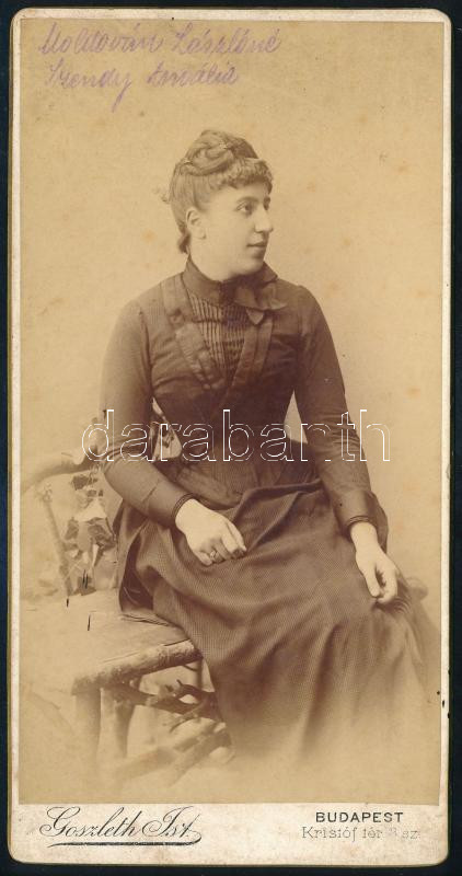 cca 1890 Moldován Lászlóné Szendi Amália, keményhátú fotó Goszleth Ist... https://www.darabanth.com/hu/504-Gyorsarveres/504.0/Fotomuveszet/Foto~1000005/cca-1890-Moldovan-Laszlone-Szendi-Amalia-kemenyhatu-foto-Goszleth-Istvan-budapesti-muter~II3424527