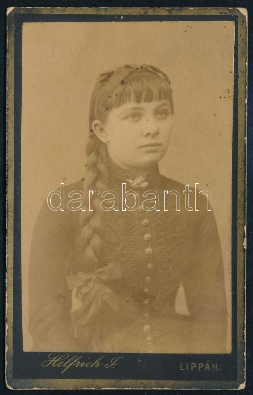 cca 1900 Fiatal lány hosszú copffal, keményhátú fotó Helfrich József l... https://www.darabanth.com/hu/504-Gyorsarveres/504.0/Fotomuveszet/Foto~1000005/cca-1900-Fiatal-lany-hosszu-copffal-kemenyhatu-foto-Helfrich-Jozsef-lippai-mutermebol-10~II3424534