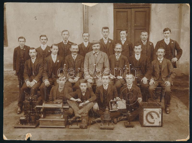 cca 1910/30 Tablófotó, rajta érdekes technikai eszközökkel, kopott, 17... https://www.darabanth.com/hu/504-Gyorsarveres/504.0/Fotomuveszet/Foto~1000005/cca-191030-Tablofoto-rajta-erdekes-technikai-eszkozokkel-kopott-17x23-cm~II3410028