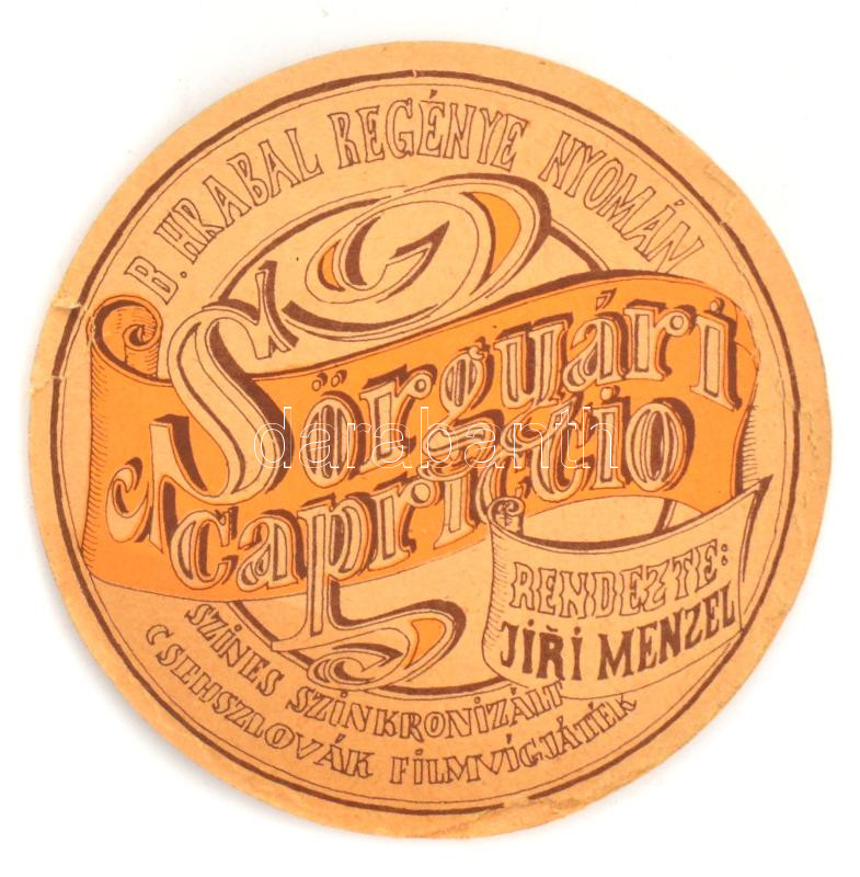 Leírás: Sörgyári Capriccio című Jiri Menzel film magyar bemutatójára készített söralátét, kopással, aláírásokkal, d: 9,5 cm
