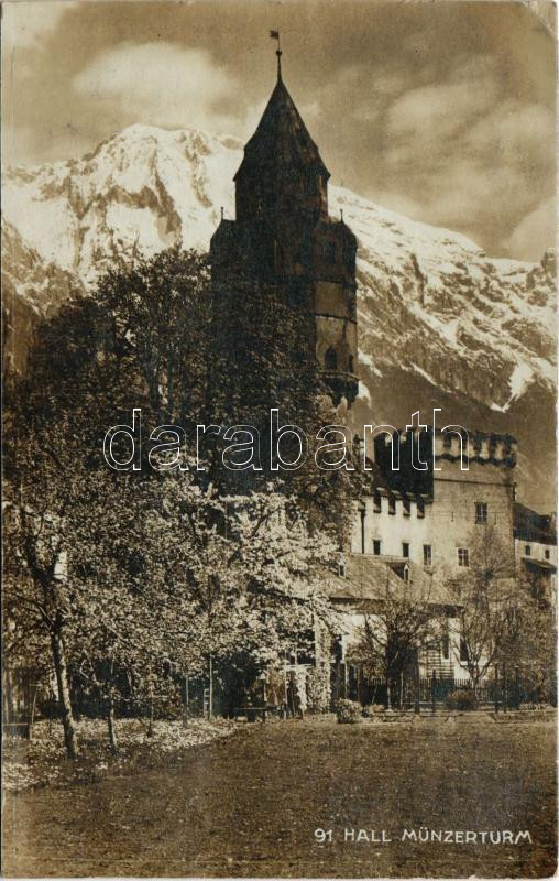 1920 Hall in Tirol, Münzerturm / mint tower (cut) https://www.darabanth.com/hu/504-Gyorsarveres/504.0/Kepeslapok/Ausztria~2000012/1920-Hall-in-Tirol-Munzerturm-mint-tower-cut~II3206966