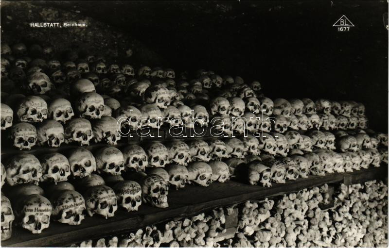 1935 Hallstatt, Beinhaus / Charnel House, skulls https://www.darabanth.com/hu/504-Gyorsarveres/504.0/Kepeslapok/Ausztria~2000012/1935-Hallstatt-Beinhaus-Charnel-House-skulls~II3209718