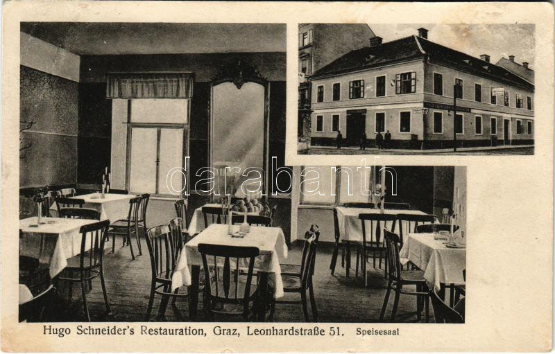 Graz (Steiermark), Hugo Schneider's Restauration, Speisesaal. Leo... https://www.darabanth.com/hu/504-Gyorsarveres/504.0/Kepeslapok/Ausztria~2000012/Graz-Steiermark-Hugo-Schneiders-Restauration-Speisesaal-LeonhardstraC39Fe-51-restaurant-inte~II3423758