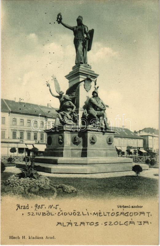 1905 Arad, Szabadság tér, Vértanú szobor, üzletek. Bloch H. kiadása / ... https://www.darabanth.com/hu/504-Gyorsarveres/504.0/Kepeslapok/Erdely~2000002/1905-Arad-Szabadsag-ter-Vertanu-szobor-uzletek-Bloch-H-kiadasa-square-monument-shops~II2869117