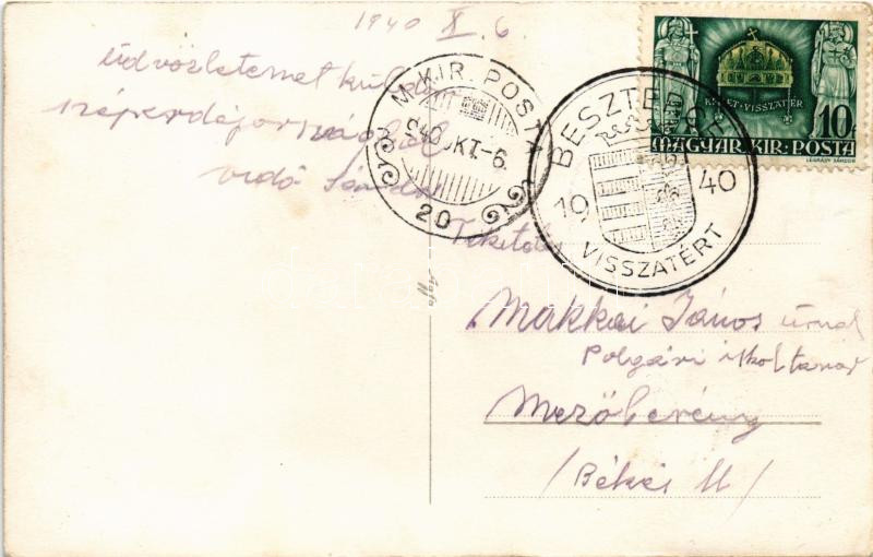 Leírás: 1940 Beszterce, Bistritz, Bistrita; Szabó és Haraszthy Ludovic üzlete / shop. photo + "1940 Beszterce visszatért" So. Stpl