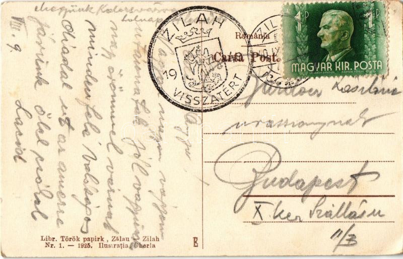 Leírás: 1940 Zilah, Zalau; Biserica r.-cat. / Római katolikus templom. Török kiadása / Catholic church + "1940 ZILAH VISSZATÉRT" So. Stpl (EB)