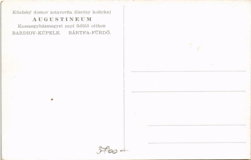 Bártfafürdő, Bardejovské Kúpele, Bardiov, Bardejov; Augustineum Kassae... https://www.darabanth.com/hu/504-Gyorsarveres/504.0/Kepeslapok/Felvidek~2000003/Bartfafurdo-Bardejovske-Kupele-Bardiov-Bardejov-Augustineum-Kassaegyhazmegyei-papi-udulC5~II3293093