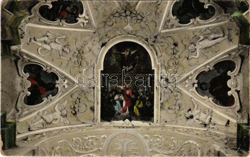 Leírás: Késmárk, Kezmarok; Thököly vár kápolna mennyezete. Schmidt Emil kiadása / castle, chapel's ceiling, interior (kopott sarkak / worn corners)