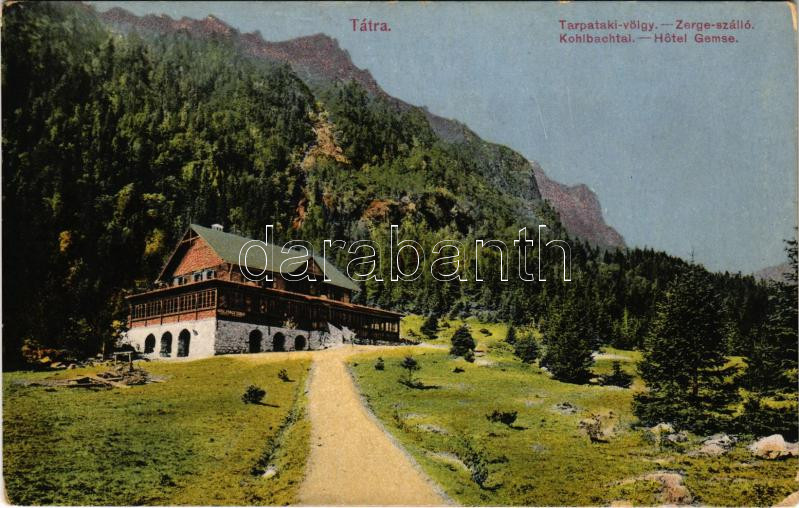 Tátra, Magas-Tátra, Vysoké Tatry; Tarpataki-völgy, Zerge szálló. Feitz... https://www.darabanth.com/hu/504-Gyorsarveres/504.0/Kepeslapok/Felvidek~2000003/Tatra-Magas-Tatra-Vysoke-Tatry-Tarpataki-volgy-Zerge-szallo-Feitzinger-Ede-No-1033-Ko~II3119486