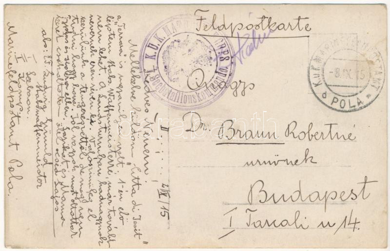 1915 A Pola felett lelőtt Citta di Jesi olasz léghajó maradványai, osztrák-magyar haditengerészet / K.u.K. Kriegsmarine / WWI Italian Citta di Jessi military balloon shot in Pula, Austro-Hungarian Navy. photo + "K.U.K. MATROSENKORPS I. Seebataillonskommando" (EK)