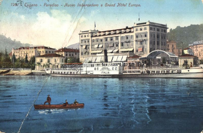 Italian steamer SS Italia, Lugano, Grand Hotel Europa (fa) https://www.darabanth.com/hu/504-Gyorsarveres/504.0/Kepeslapok/Hajo~2000054/Italian-steamer-SS-Italia-Lugano-Grand-Hotel-Europa-fa~II1461123