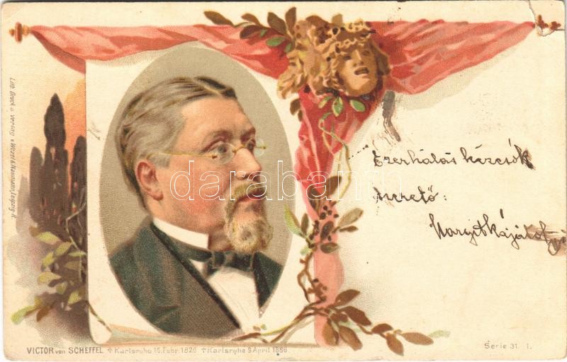 1919 Joseph Victor von Scheffel, German poet and novelist. Lith. Druck... https://www.darabanth.com/hu/504-Gyorsarveres/504.0/Kepeslapok/Hires-Ember~2000056/1919-Joseph-Victor-von-Scheffel-German-poet-and-novelist-Lith-Druck-u-Verlag-v-Wezel-Naumann-~II2410801
