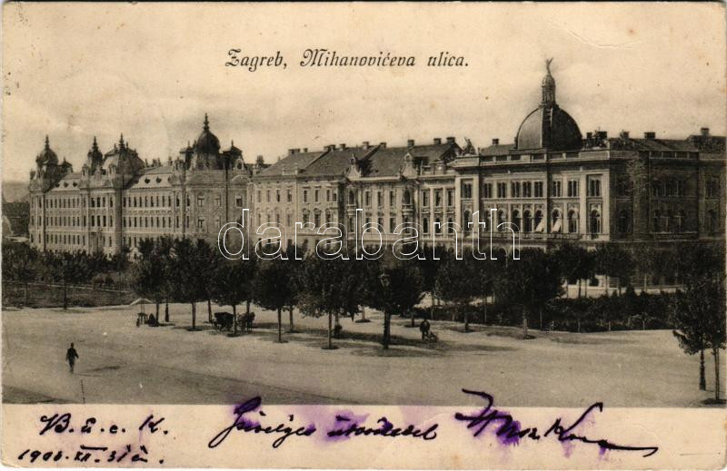 1904 Zagreb, Zágráb; Mihanoviceva ulica / street (fa) https://www.darabanth.com/hu/504-Gyorsarveres/504.0/Kepeslapok/Horvatorszag~2000004/1904-Zagreb-Zagrab-Mihanoviceva-ulica-street-fa~II3205112