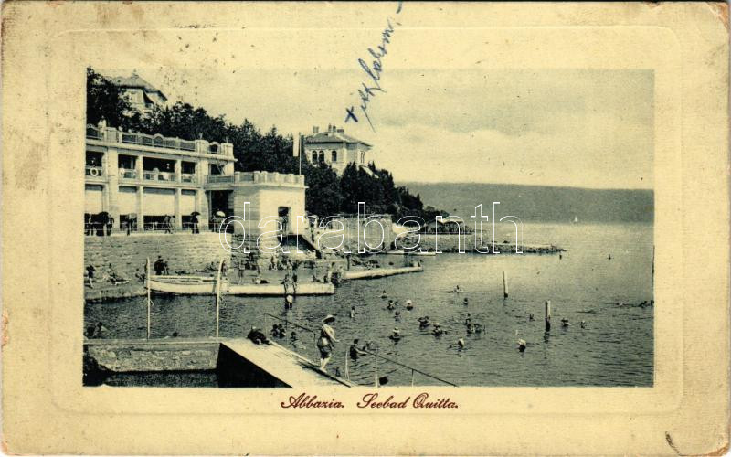 1912 Abbazia, Opatija; Seebad Quitta / strand, fürdőzők. W.L. Bp. 3776... https://www.darabanth.com/hu/504-Gyorsarveres/504.0/Kepeslapok/Horvatorszag~2000004/1912-Abbazia-Opatija-Seebad-Quitta-strand-furdozok-WL-Bp-3776-beach-bathers-szakadC3~II3421658
