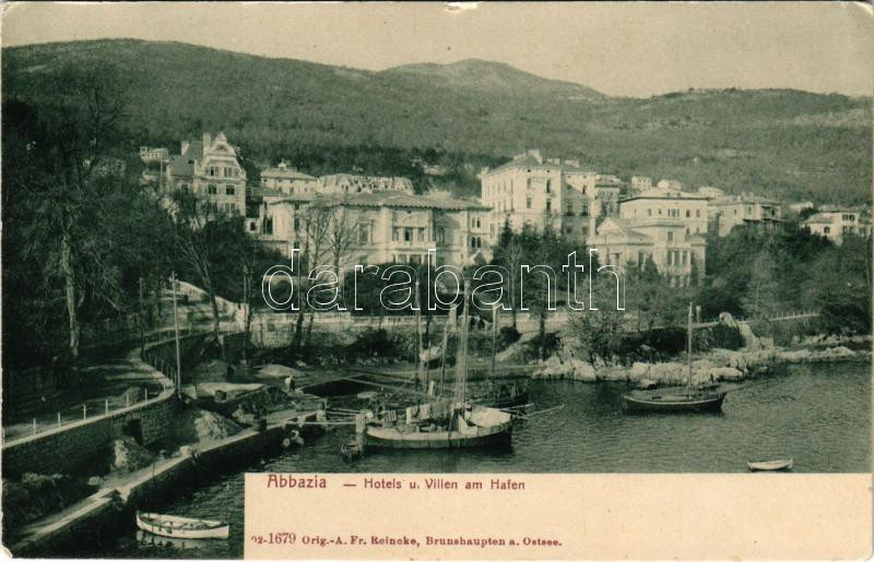 Abbazia, Opatija; Hotels und Villen am Hafen. Fr. Reincke / szálloda, ... https://www.darabanth.com/hu/504-Gyorsarveres/504.0/Kepeslapok/Horvatorszag~2000004/Abbazia-Opatija-Hotels-und-Villen-am-Hafen-Fr-Reincke-szalloda-villak-kikoto-hotel-vi~II3311837