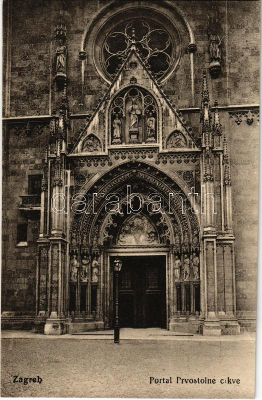 Zagreb, Zágráb; Portal Prvostolne crkve / church, entrance https://www.darabanth.com/hu/504-Gyorsarveres/504.0/Kepeslapok/Horvatorszag~2000004/Zagreb-Zagrab-Portal-Prvostolne-crkve-church-entrance~II3147828