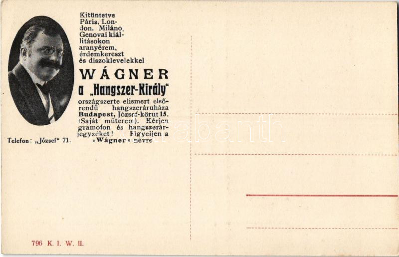 David Wolffsohn, litván-zsidó üzletember, kiemelkedő korai cionista és a Cionista Szervezet második elnöke volt, Wágner "Hangszerkirály" reklám a hátoldalon. K. I. W. II. 769. / a Lithuanian-Jewish businessman, prominent early Zionist and second president of the Zionist Organization, advertisement on the backside (EK)