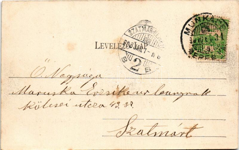 Leírás: 1908 Munkács, Mukacheve, Mukachevo, Mukacevo; Csillag szálloda, zsinagóga. Bertsik Emil kiadása / hotel, synagogue (fl)