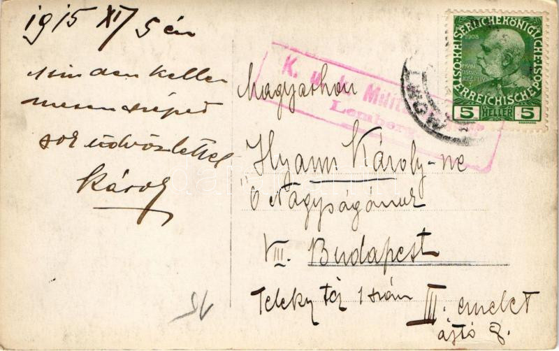 Leírás: 1915 Első világháború, osztrák-magyar katonák, tábori mise / WWI Austro-Hungarian K.u.k. military, military mass. photo + "K.u.k. Militärzensur Lemberg" (gyűrődés / crease)