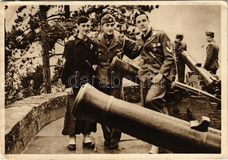 1943 A leventeszázad, mint az olasz GIL ifjúsági intézmény vendége 1940. október 9-én Trieste-t is megtekintette. Leventéink az avantgardisták szeretetteljes kalauzolása mellett a híres Miramare kastélyban / WWII Hungarian Paramilitary Youth Organization (Levente) meeting G.I.L. (Italian fascist youth organization) members in Trieste, Italy (EB)