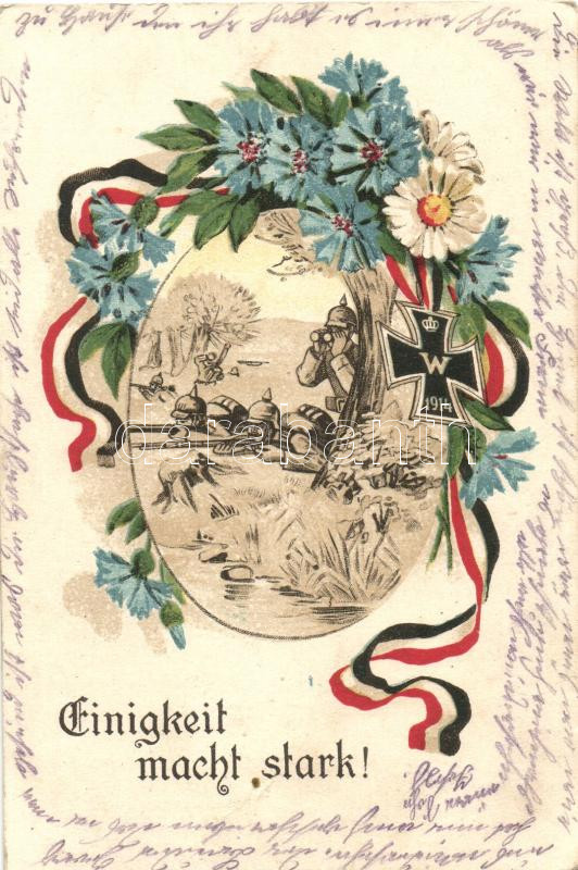 Einigkeit macht stark! / German soldiers, flag, S.V.D Nr. 3013. floral... https://www.darabanth.com/hu/504-Gyorsarveres/504.0/Kepeslapok/Katonai~2000062/Einigkeit-macht-stark-German-soldiers-flag-SVD-Nr-3013-floral-litho-wet-damage~II1215445