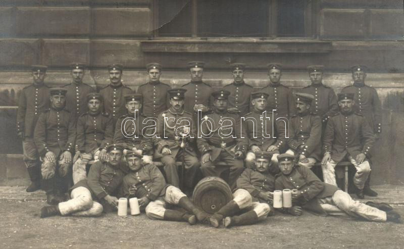 WWI German soldiers with beer, Hans Möller's group photo (fa) https://www.darabanth.com/hu/504-Gyorsarveres/504.0/Kepeslapok/Katonai~2000062/WWI-German-soldiers-with-beer-Hans-Mollers-group-photo-fa~II1215458