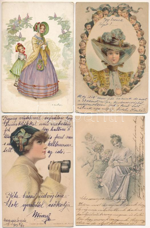 Leírás: 4 db RÉGI képeslap: hölgyek / 4 pre-1945 ladies art postcards