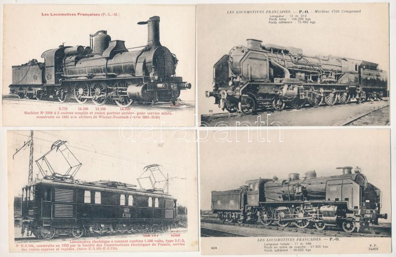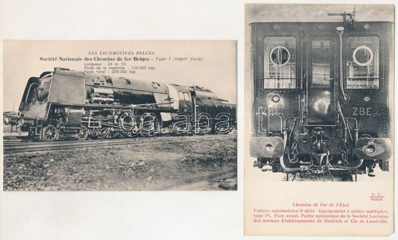Leírás: 45 db RÉGI megíratlan francia képeslap: vonatok, gőzmozdonyok / 45 pre-1945 unused French postcards: trains, locomotives