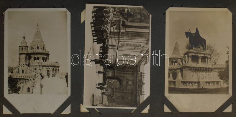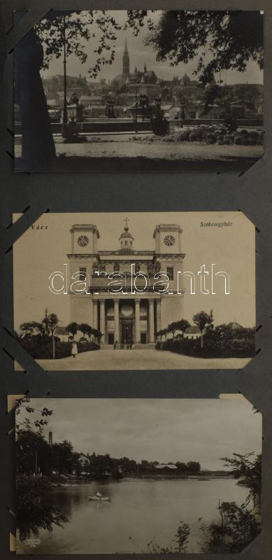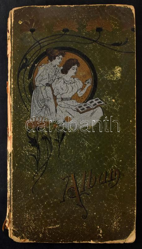 76 db RÉGI magyarországi és külföldi város képeslap, szecessziós albumba rendezve, közte Felvidék, Erdély, Kárpátalja is. Az album borítója kissé sérült, belül jó állapotú / 76 pre-1945 HUngarian and foreign town postcards in an Art Nouveau album, with Transylvania, Upper Hungary, Subcarpathia. The cover of the album is slightly damaged, but with good condition inside.